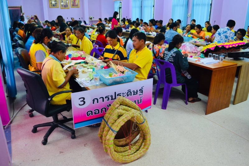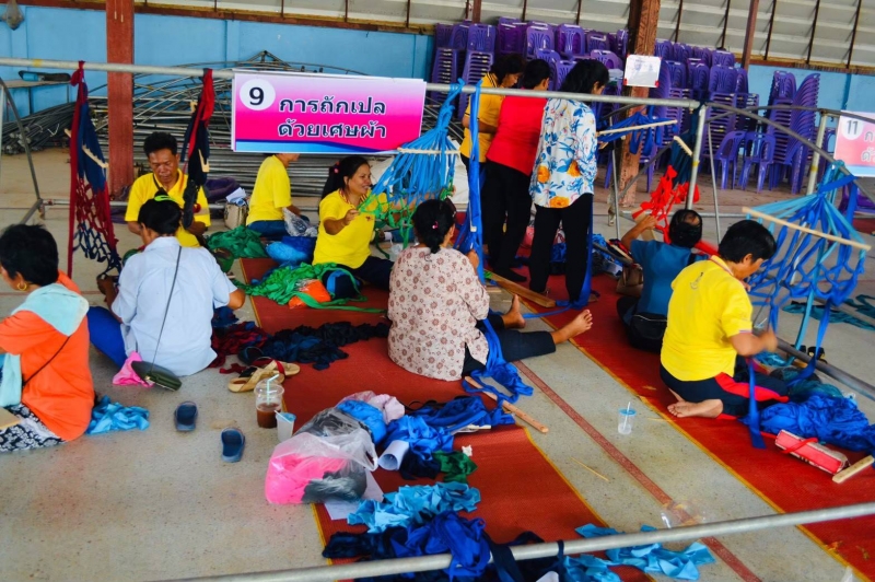 ฝึกอบรมอาชีพเสริมระยะสั้น ประดิษฐ์ดอกไม้จันทน์,การถักเปลจากเศษผ้า