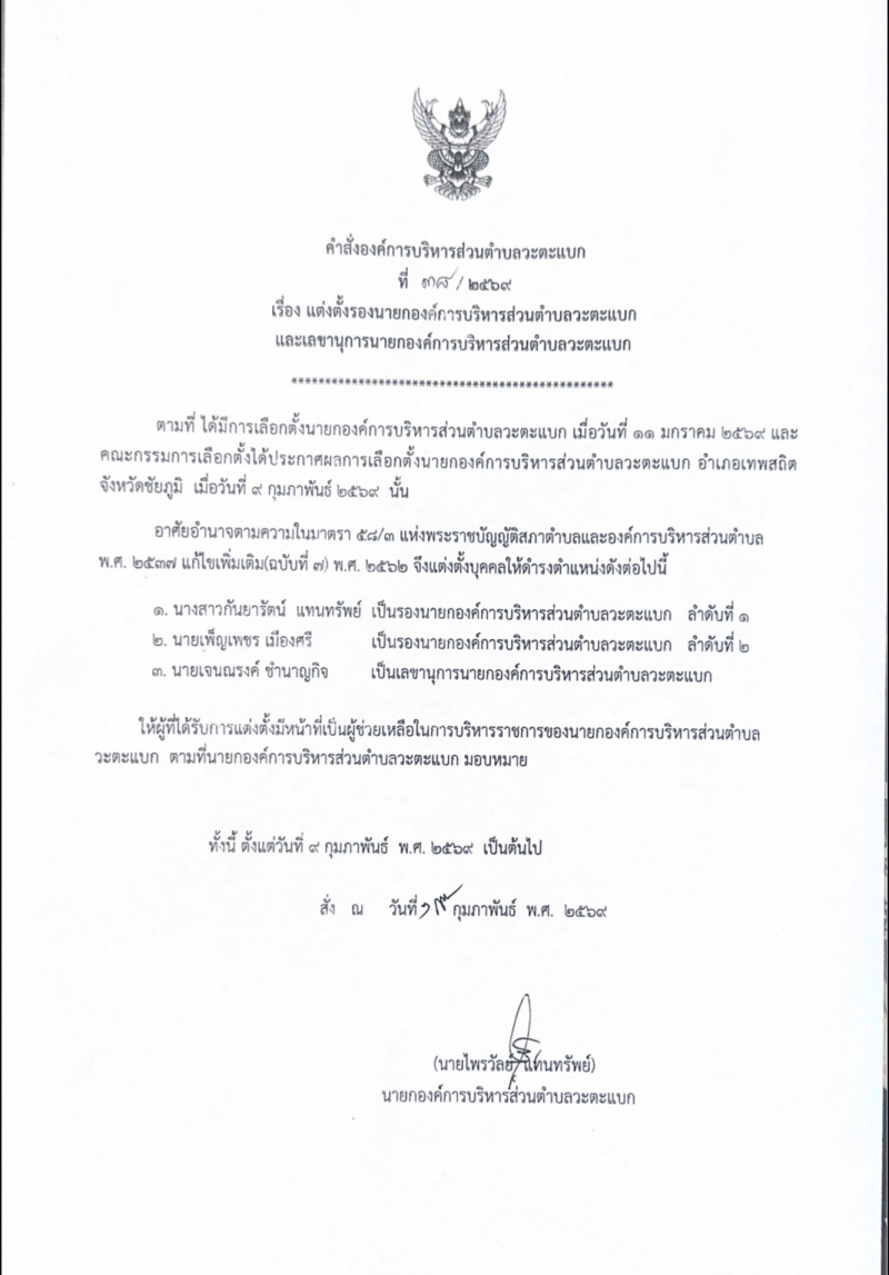 เรื่อง ผลการเลือกตั้งนายกองค์การบริหารส่วนตำบลและสภาชิกสภาองค์การบริหารส่วนตำบลวะตะแบก