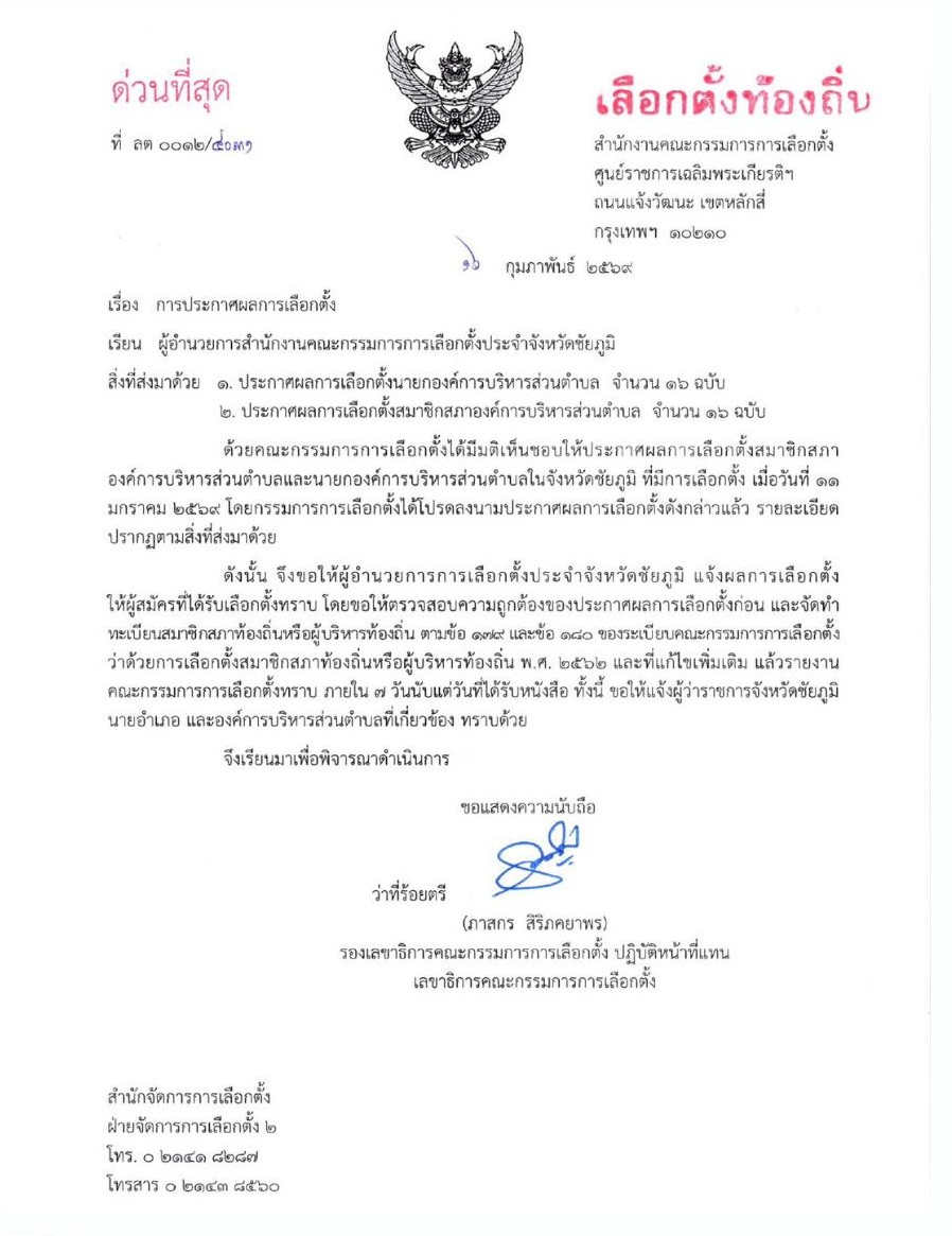 ประกาศผู้อำนวยการการเลือกตั้ง อบต.วะตะแบก