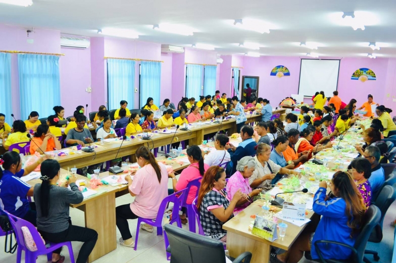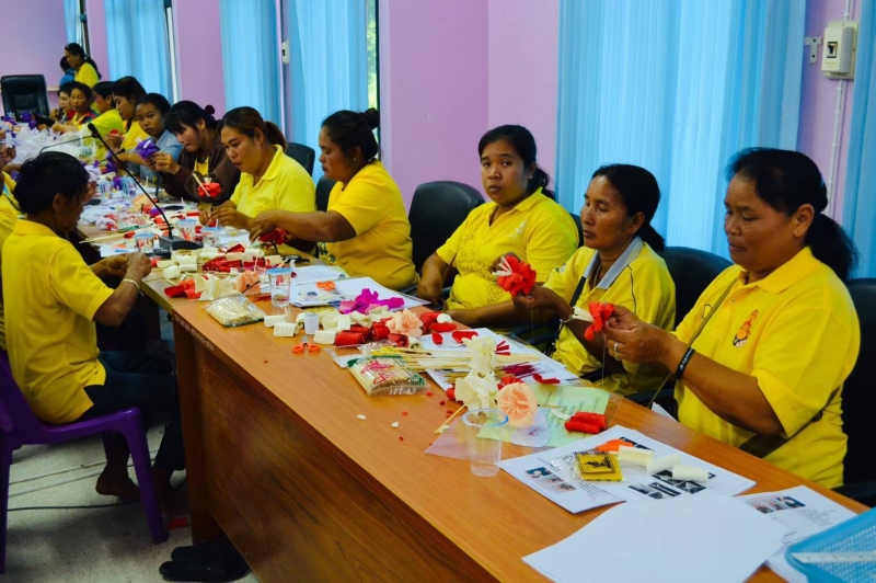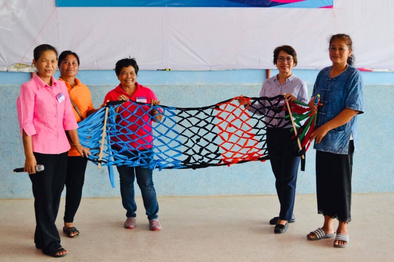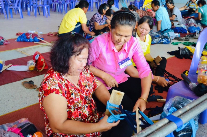 ฝึกอบรมอาชีพเสริมระยะสั้น ประดิษฐ์ดอกไม้จันทน์,การถักเปลจากเศษผ้า