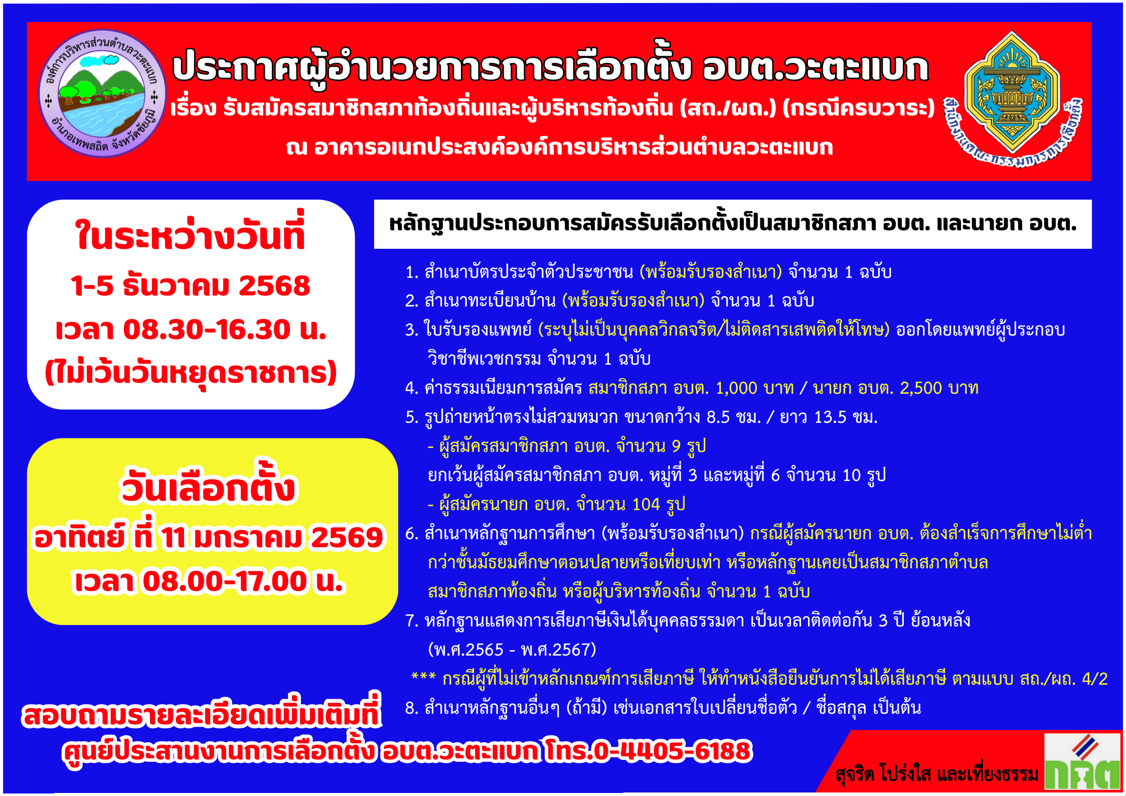 ประกาศผู้อำนวยการการเลือกตั้ง อบต.วะตะแบก
